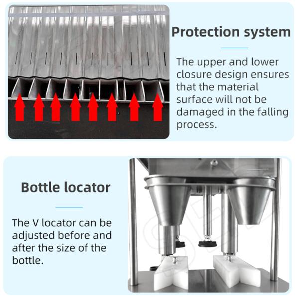 2. Vibrating feeding and rotary cutting design, the feeding speed can be adjusted infinitely for manual bottle placement.